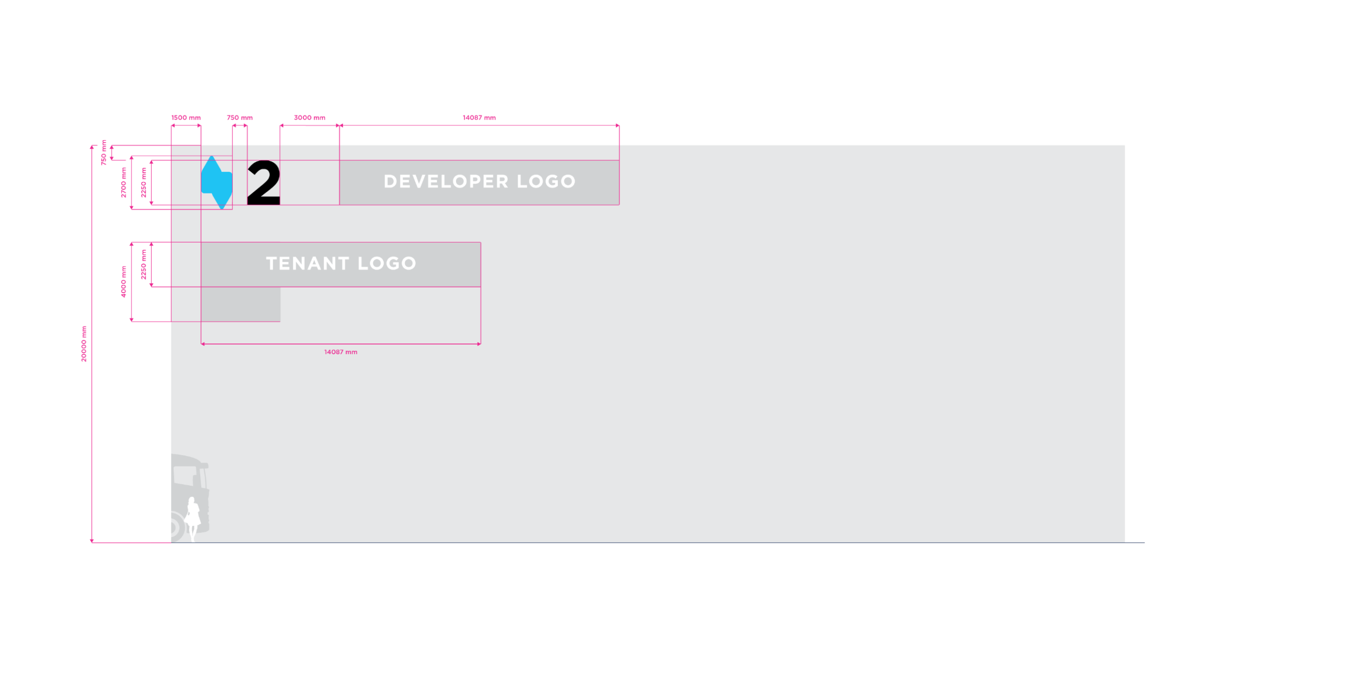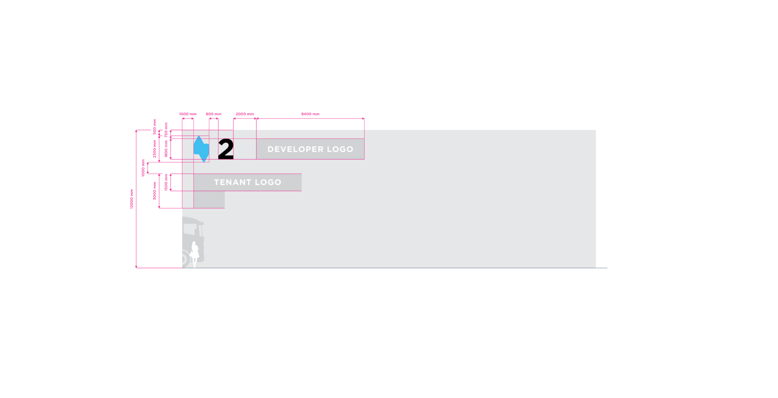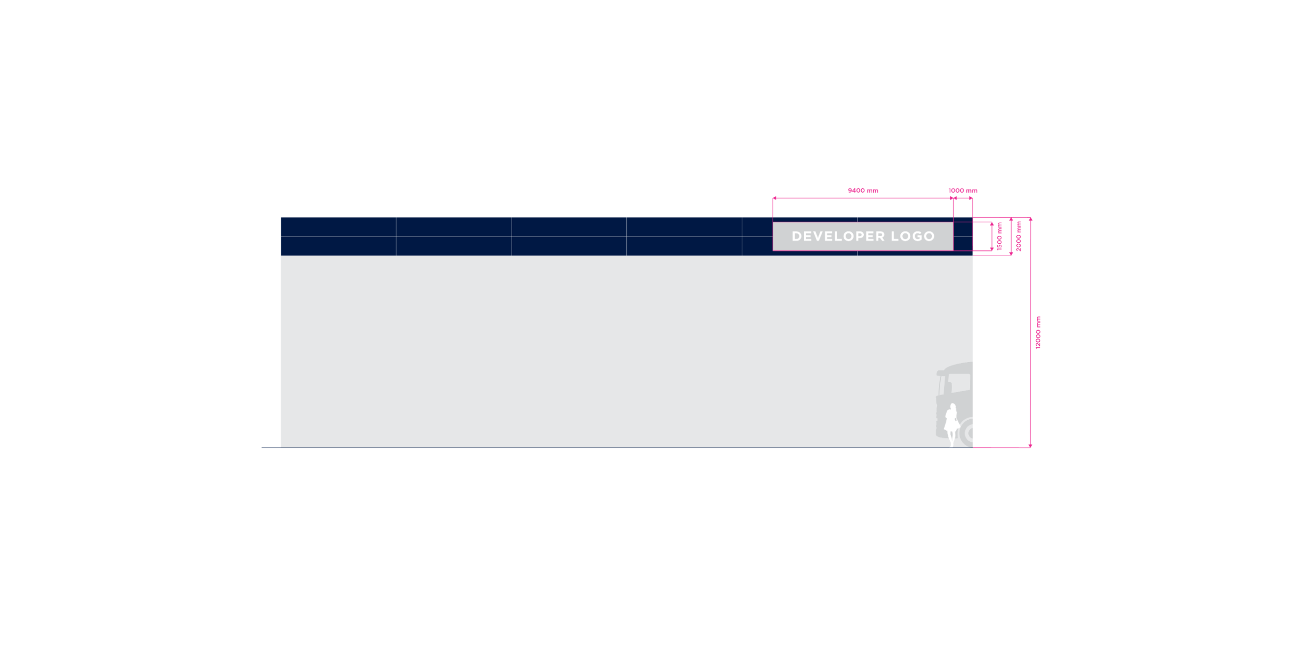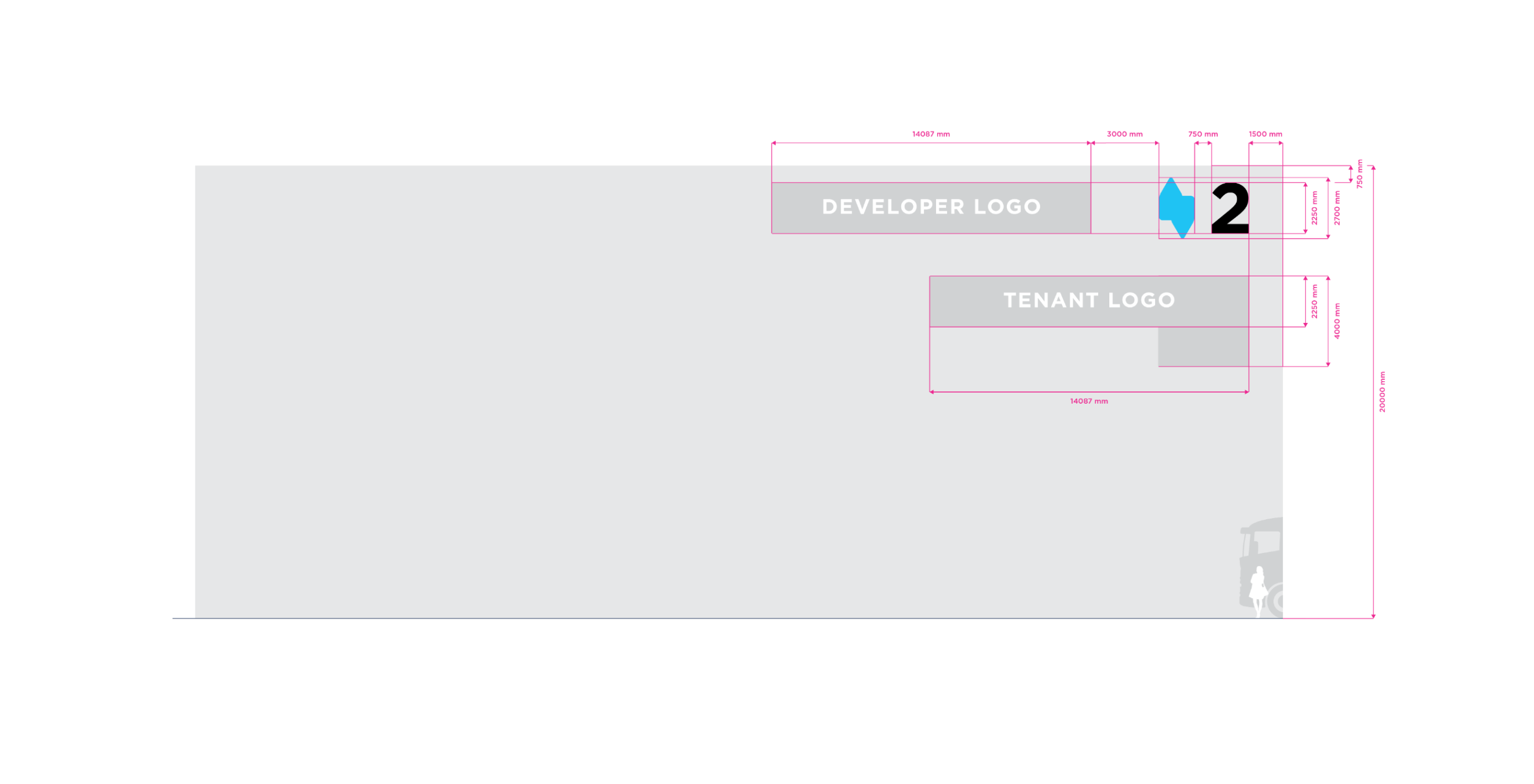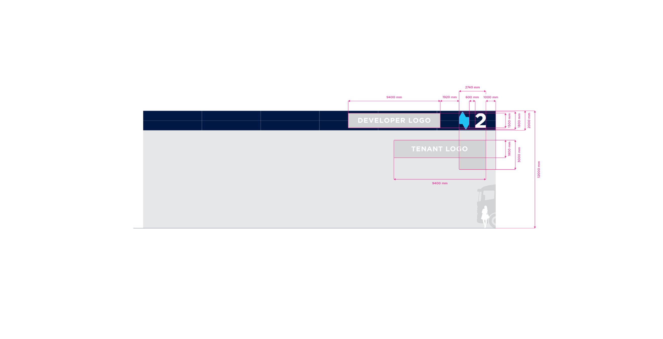 Double Stripe is the standart for stripe facade building type. The height of the building may vary in practice. For the purposes of standardizing branding rules, we specify the size standard as 12 meters and the large size category as 20 meters. Character depth 120 mm. The individual characters are shaped and welded from AL sheet metal and painted with two-component acrylic paint in a RAL shade as agreed. The front surface of the characters is made of opal plexiglass with a translucent film in the required color; the index is without adhesive film. The plexiglass is attached behind a glued inner plexiglass rim. Internal illumination with LED light-emitting diodes. Power transformers are located inside the signs. Individual signs will be mounted directly behind the wall of the building. Power supply 230 V, 50 Hz, TN-S system, required supply min. CYKY3C x 1.5 mm2 10 A/D, power consumption approx. 200 W.