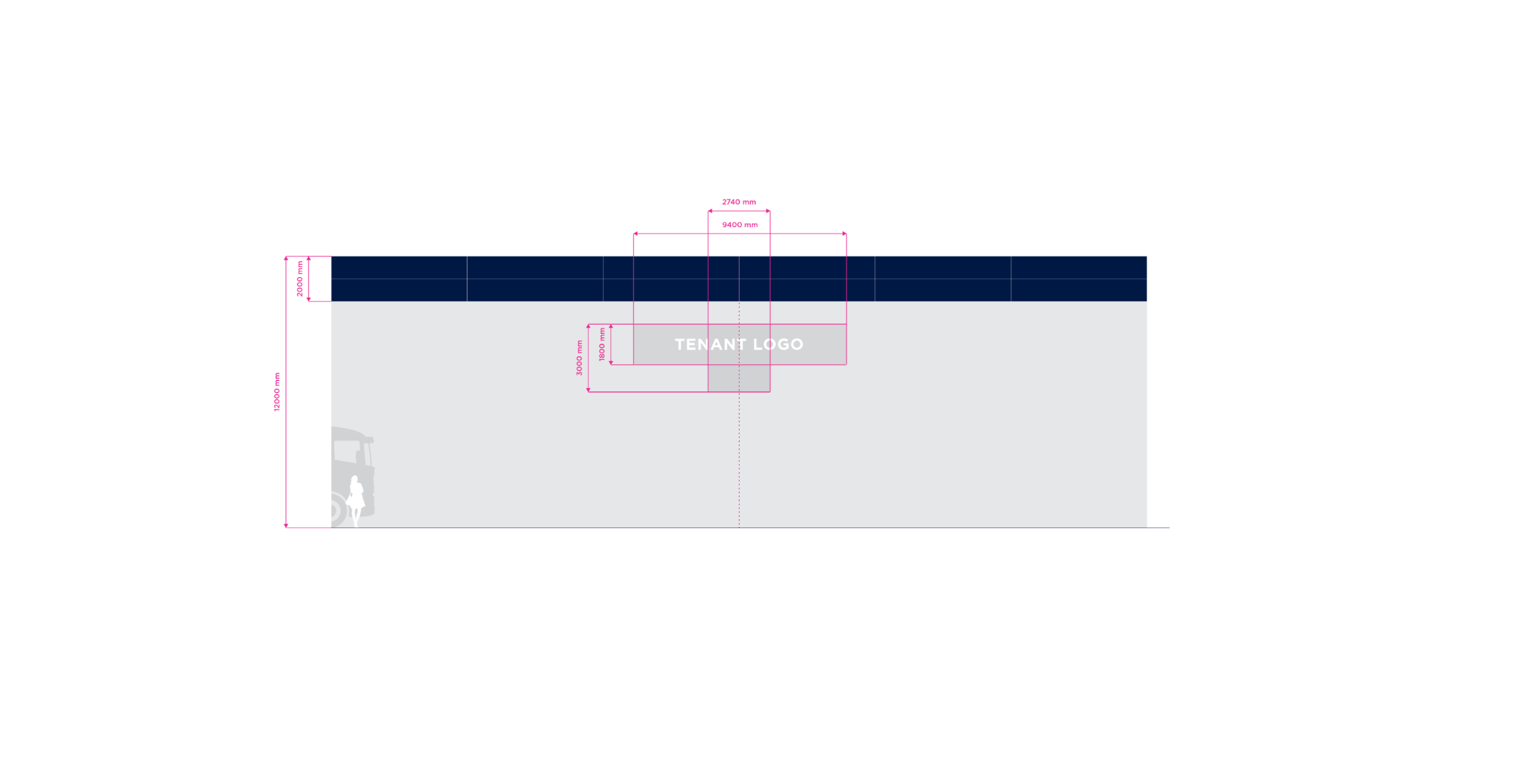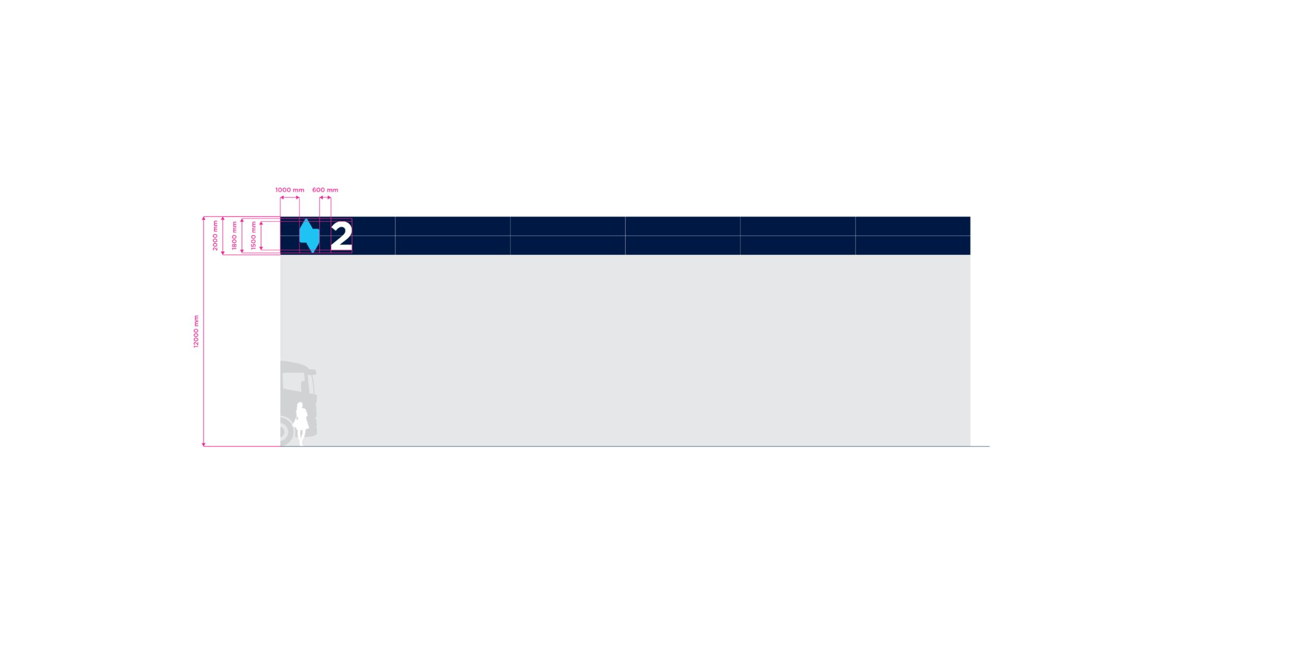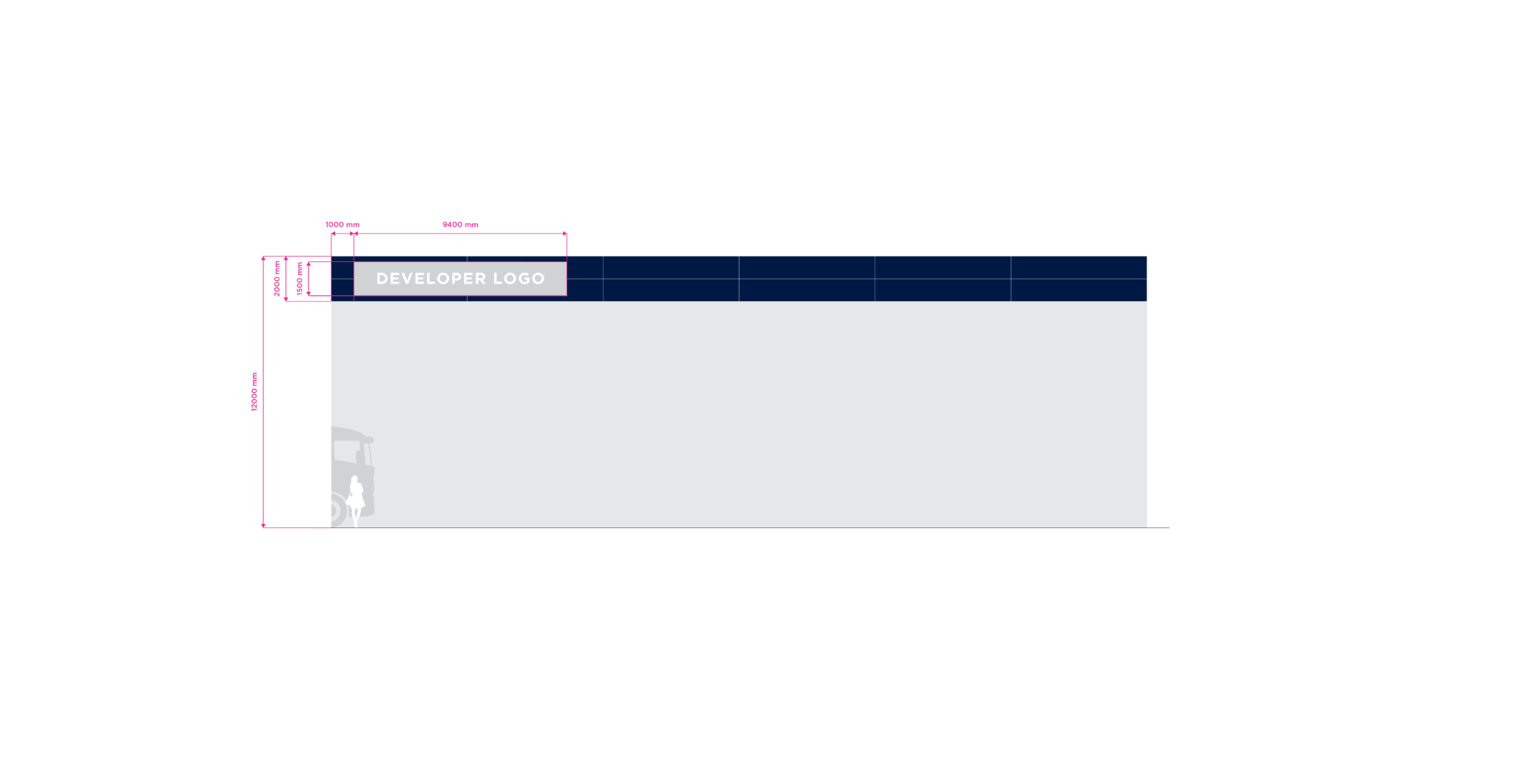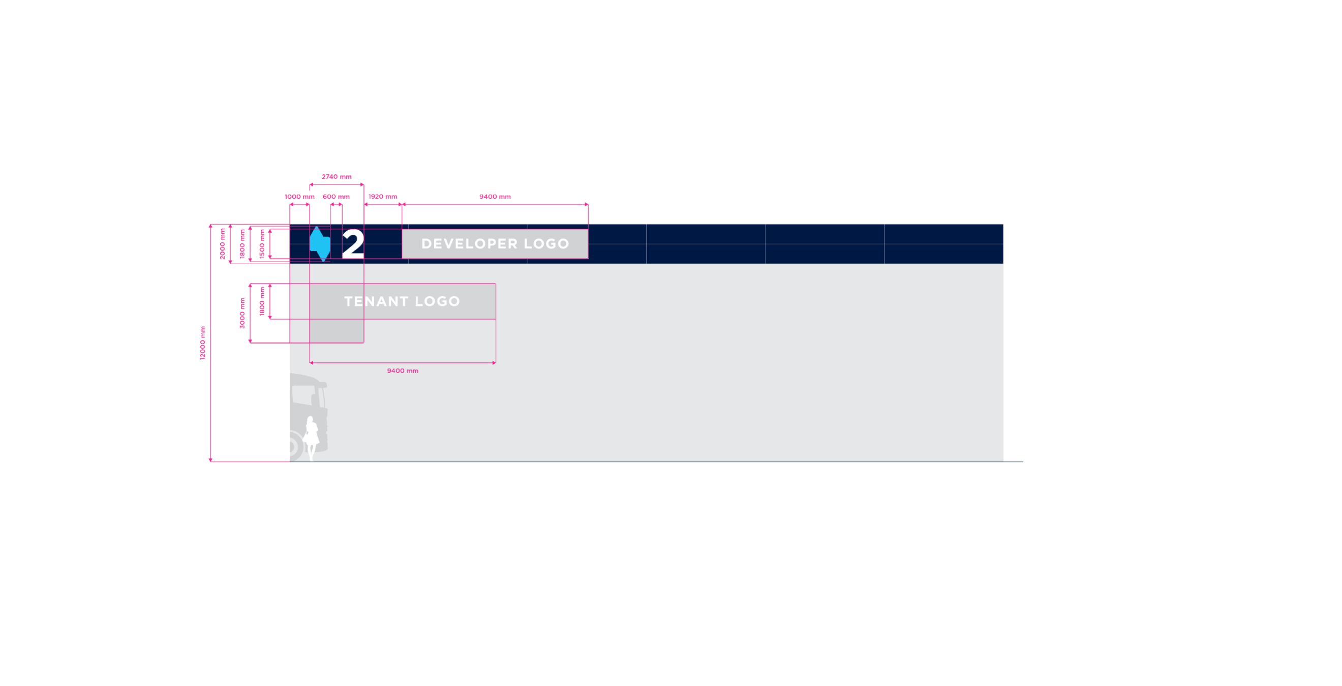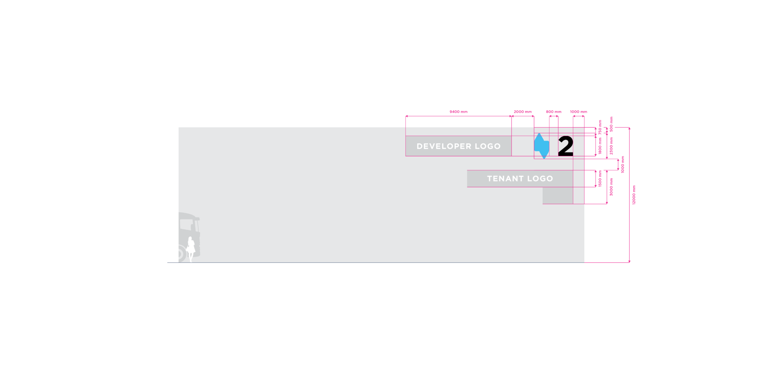Double Stripe is the standart for stripe facade building type. The height of the building may vary in practice. For the purposes of standardizing branding rules, we specify the size standard as 12 meters and the large size category as 20 meters. Character depth 120 mm. The individual characters are shaped and welded from AL sheet metal and painted with two-component acrylic paint in a RAL shade as agreed. The front surface of the characters is made of opal plexiglass with a translucent film in the required color; the index is without adhesive film. The plexiglass is attached behind a glued inner plexiglass rim. Internal illumination with LED light-emitting diodes. Power transformers are located inside the signs. Individual signs will be mounted directly behind the wall of the building. Power supply 230 V, 50 Hz, TN-S system, required supply min. CYKY3C x 1.5 mm2 10 A/D, power consumption approx. 200 W.