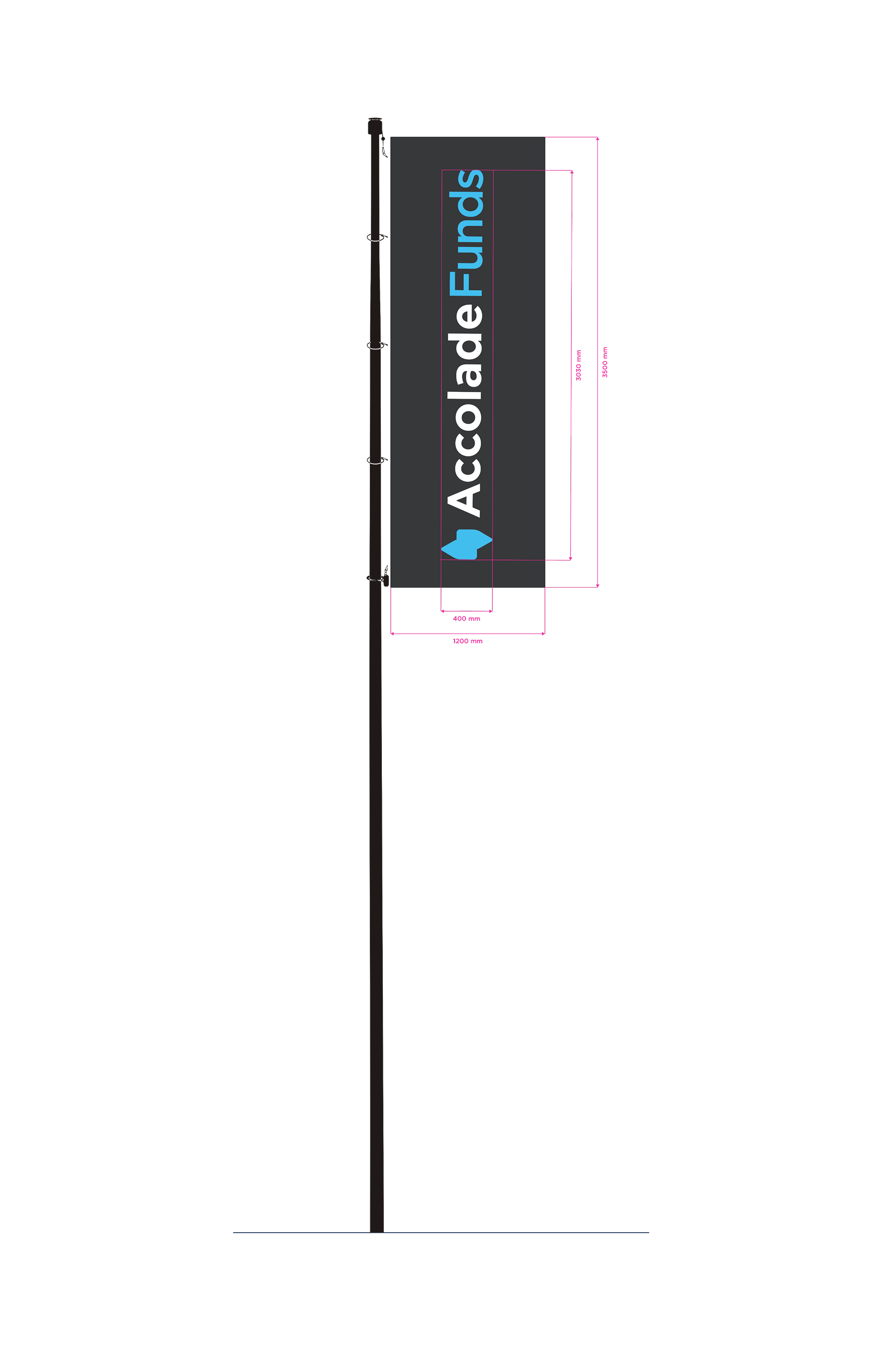 1200 x 3500 mm 8000 mm The logo is always in the center of the flag